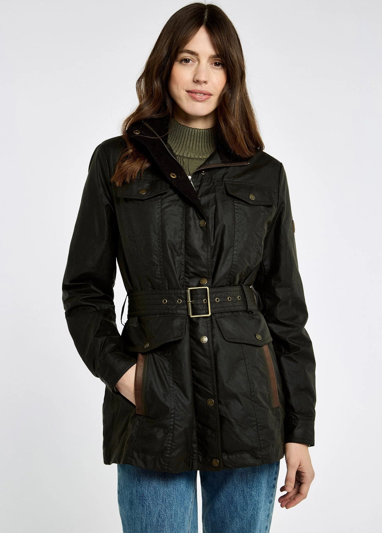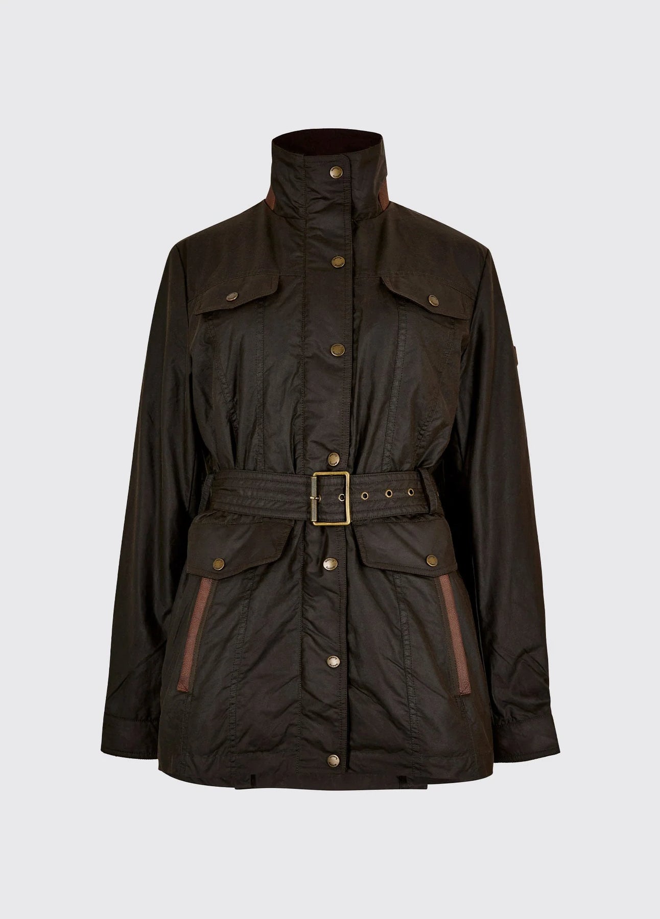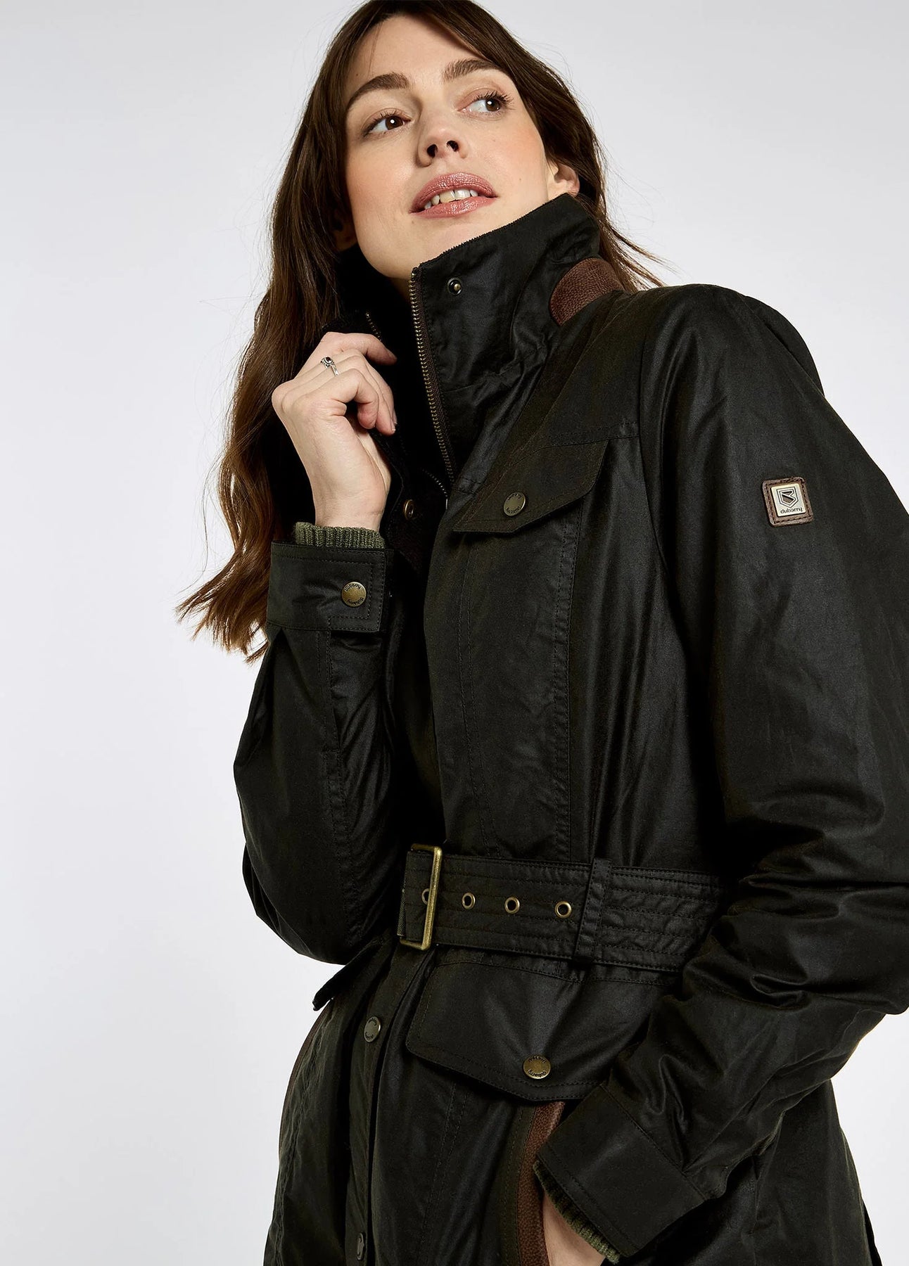 Deze Gandon dicht geweven waxjas van katoen met een zijdezachte silkwax-afwerking combineert comfort en een verfijnde snit met een klassieke uitstraling. Dankzij de meerdere zakken en het ceintuurontwerp heeft de damesjas een functionele, utility-uitstraling, terwijl de leren details en de gevoerde panelen met zachte sherpa een eigentijdse, luxe touch geven.