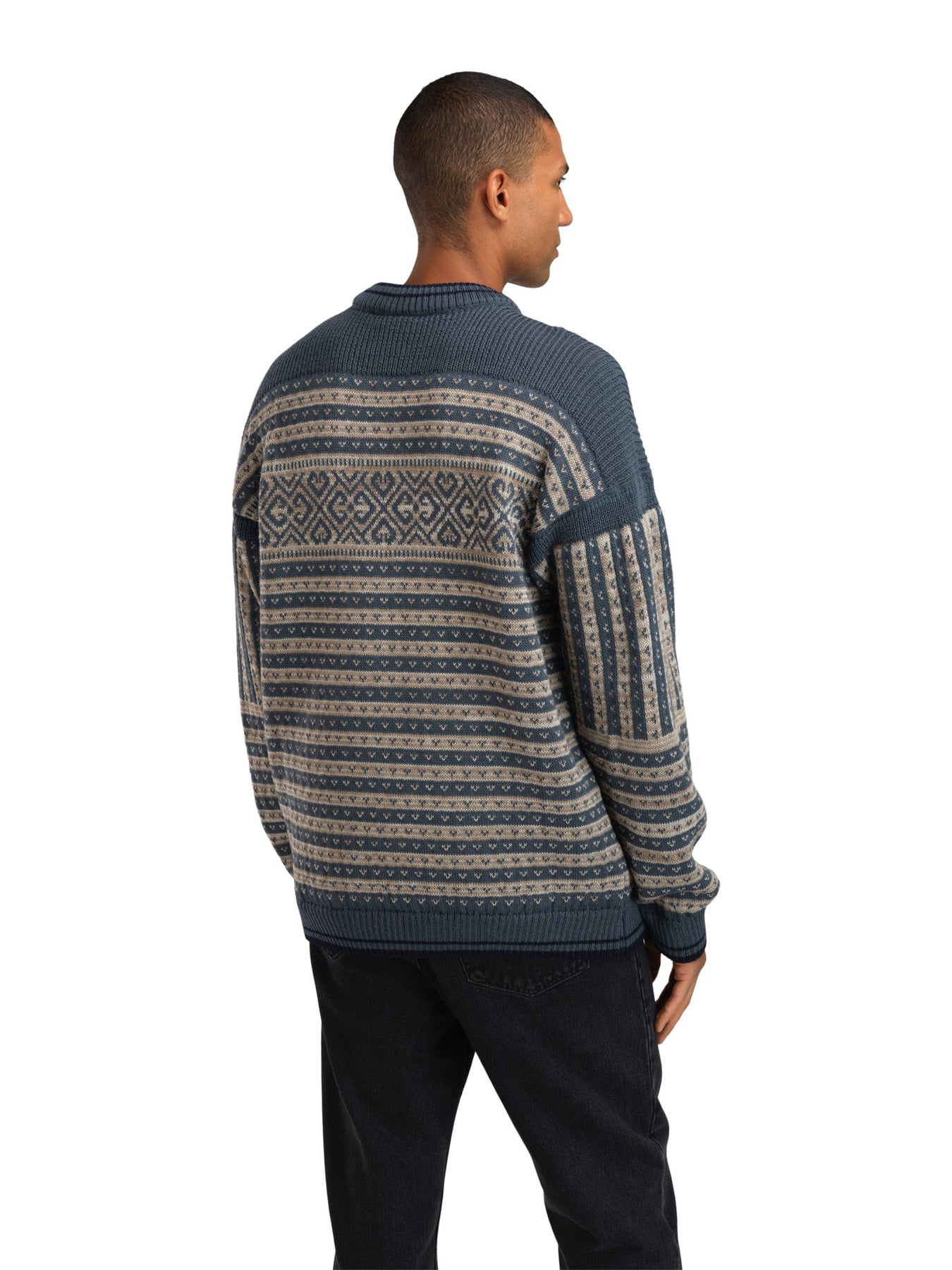 De Ramberg trui geeft een tijdloos design een unieke urban flair. Met een relaxte pasvorm, geribbelde schouderdetails die de verlaagde schouder accentueren en opvallende contrasterende strepen bij de hals, mouwen en zoom, combineert Ramberg moeiteloos klassiek met modern. Geïnspireerd door de historische Fana trui, geeft Ramberg dit erfgoedstuk een moderne twist. De klassieke strepen zijn geüpdatet met een afgerond ontwerp met acht bloemblaadjes van rozen rond de borst en een traditioneel luizenpatroon, terwijl schouderaccenten en gestreepte ribafwerkingen een frisse, dynamische touch toevoegen. Verschillende garenkleuren vermengen zich in de garenmix, wat de Ramberg een levendig, urban karakter geeft.