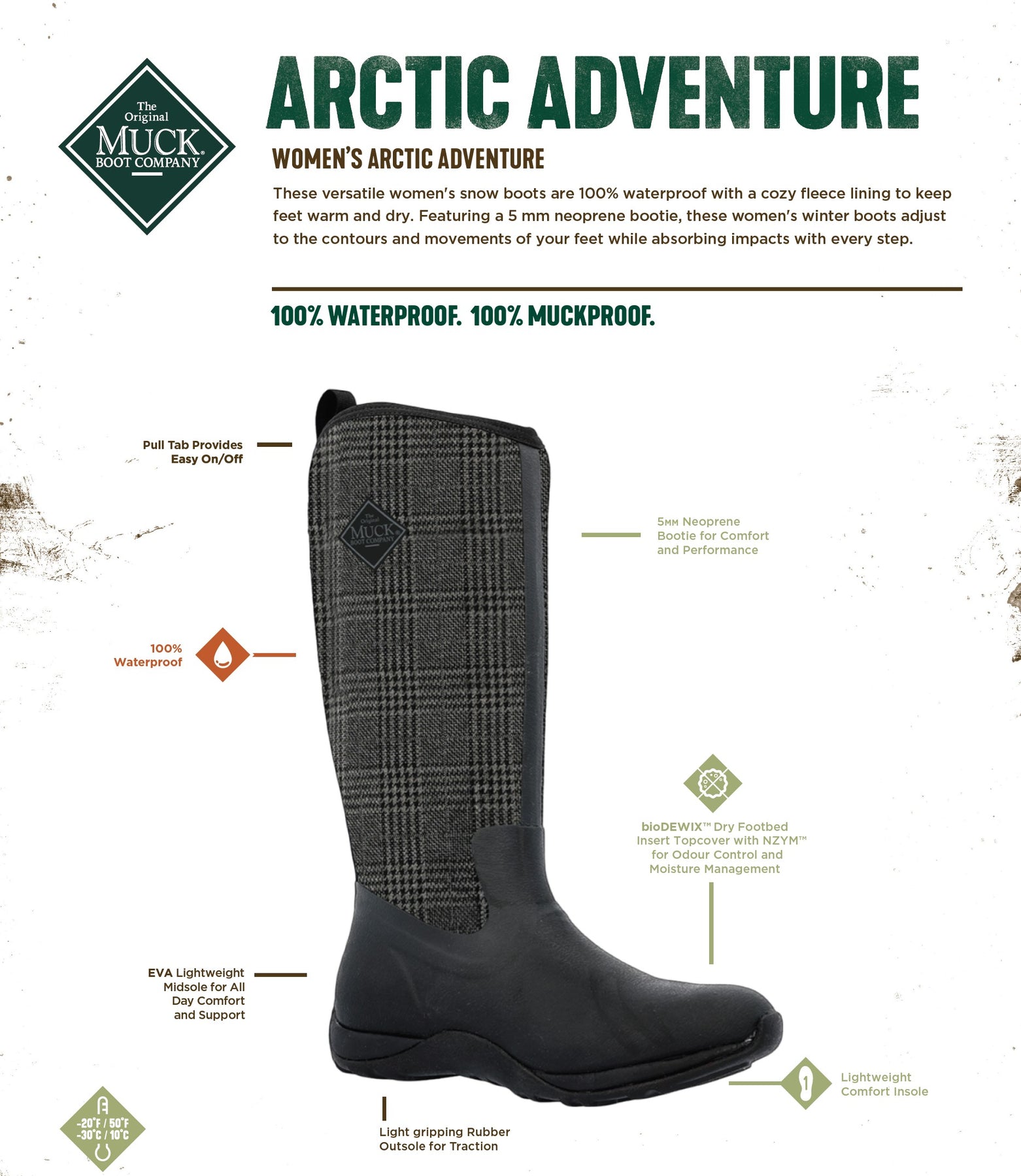 Muck Boot Arctic Adventure hoge lichtgewicht winter dameslaars. Deze hoge laarzen zijn makkelijk aan- en uit te trekken.